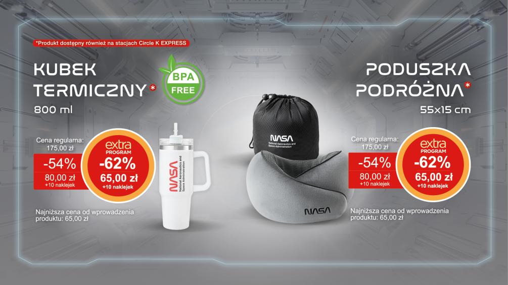 Każdy produkt dostępny wyłącznie na stacjach Circle K wyróżnia się dbałością o detale, przemyślaną konstrukcją i charakterystycznym designem, który przenosi ducha współczesnych misji kosmicznych prosto do codzienności.